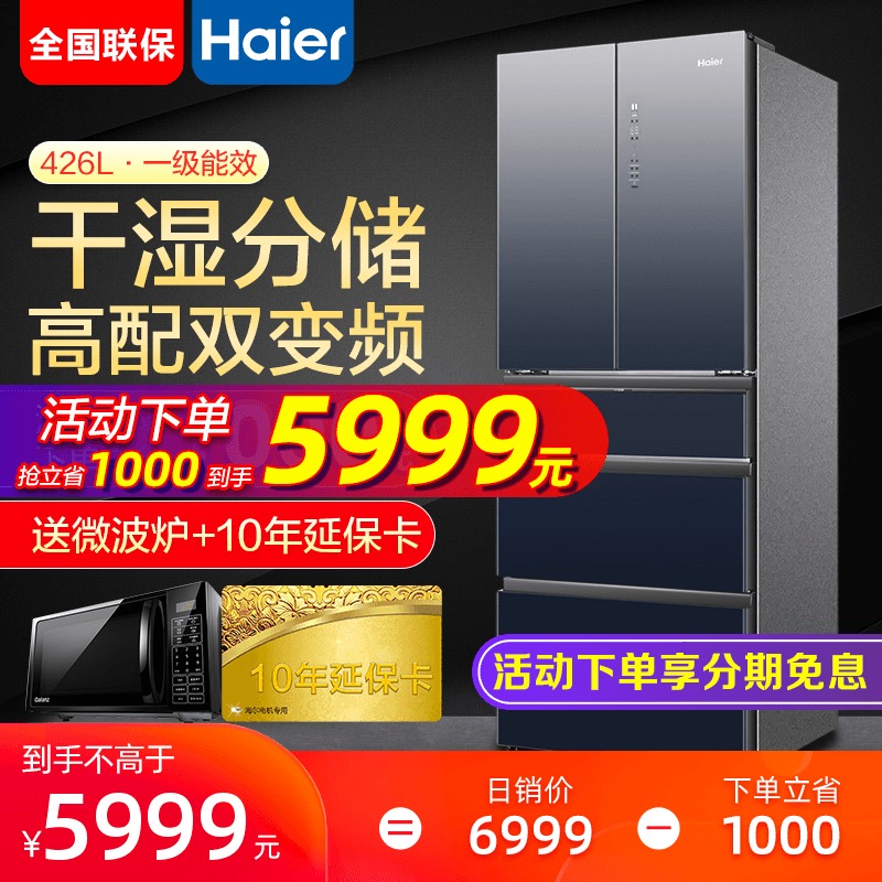 (New) Haier refrigerator frequency conversion air cooling one level dry and wet storage mute multi-door household 426WDCEU1