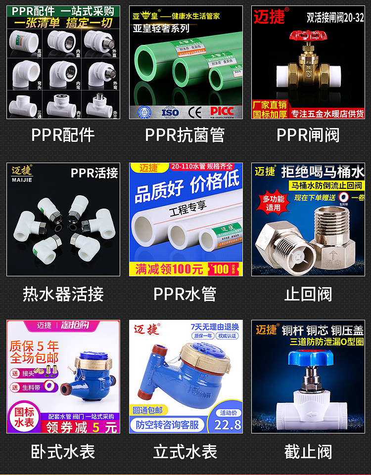 20 All-plastic double-live ball valve 25 All-plastic double-live ball valve 32 All-plastic double-live ball valve 20ppr (4 points) Steel ball (about 145 grams) 20ppr (4 points) Copper ball (about 4 points)