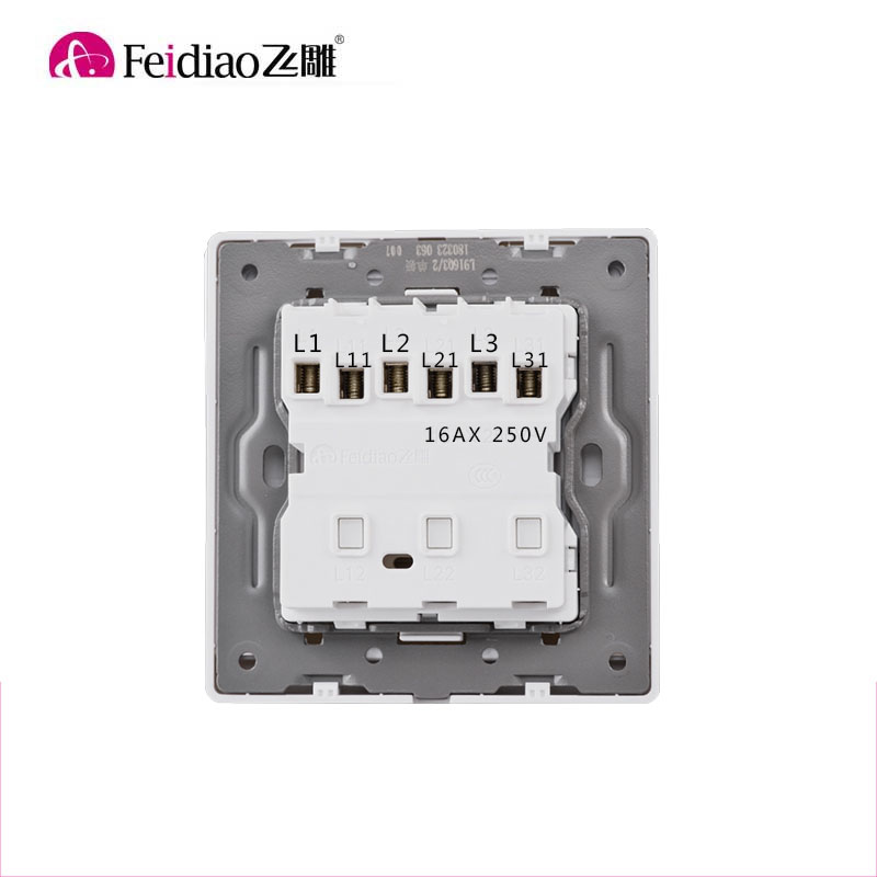 Flying Eagle 86 type surface mounted large board three-open single-control 16A high-power switch home panel 3-bit three-control single-connection triple