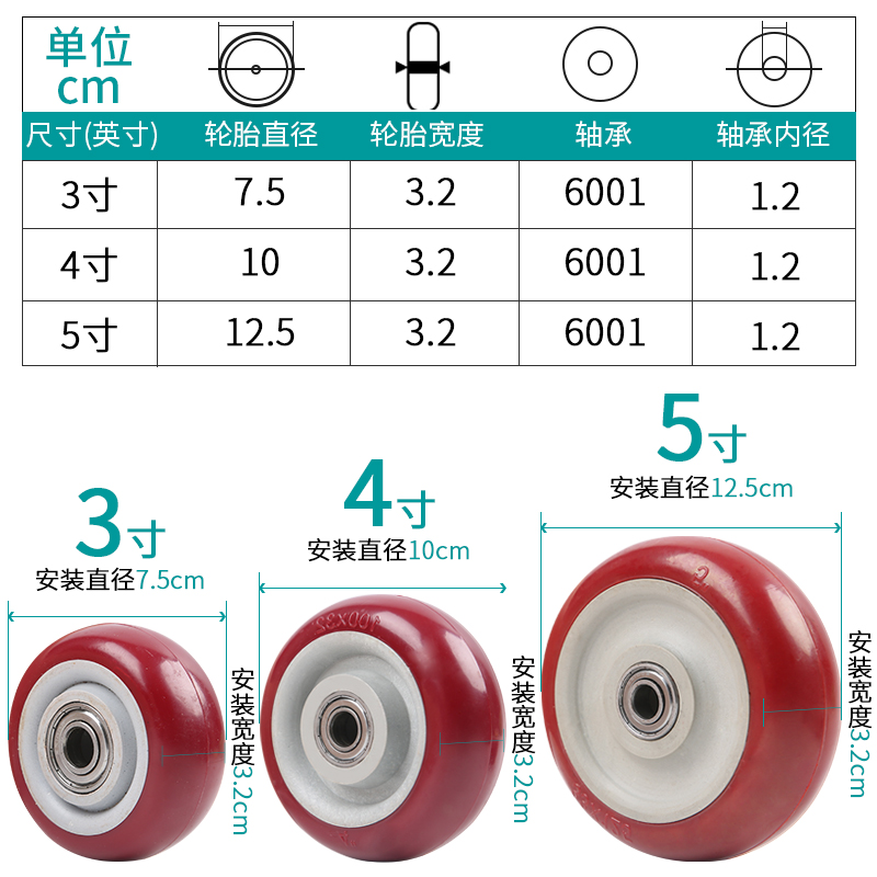 3 Inch Polyurethane Single Wheels 4 Inch Polyurethane Single Wheels 5 Inch Polyurethane Single Wheel