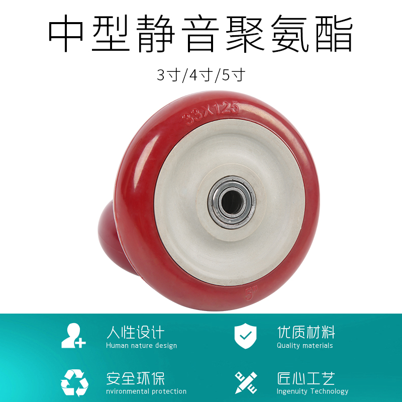 Polyurethane castors 3 inch 4 inch 5 inch Single wheel mute trolley wheel abrasion resistant heavy polyurethane castors