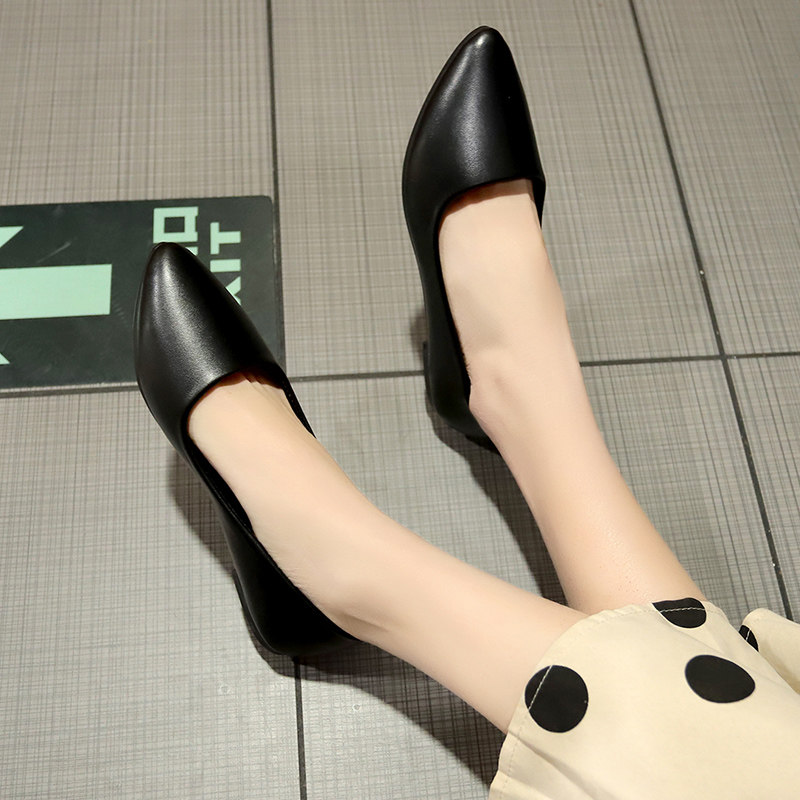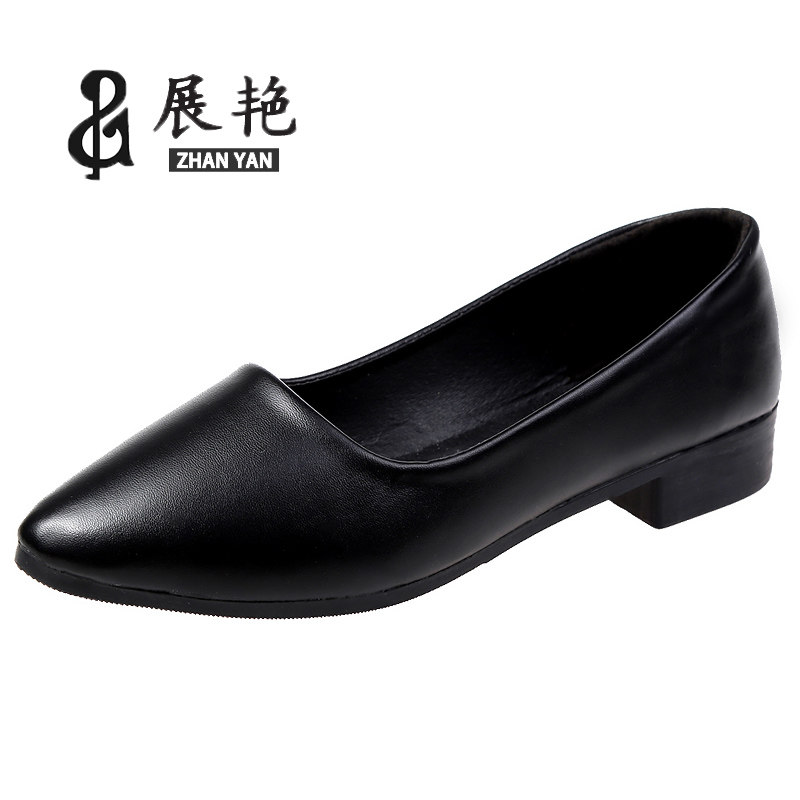 Work shoes women's black flat women's shoes professional work shoes comfortable soft bottom non-slip flat heel shallow single shoes small leather shoes