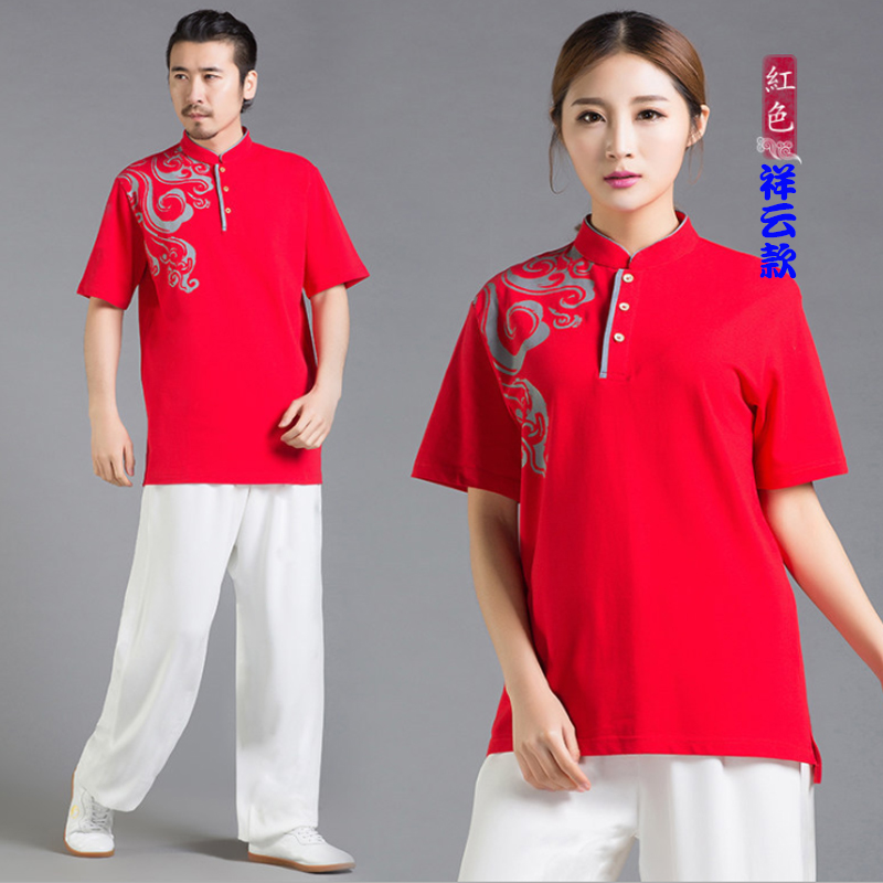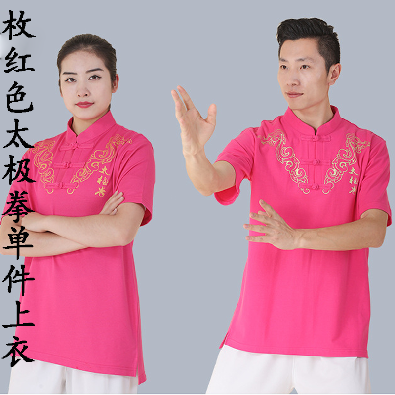 Cotton short-sleeved men's and women's breathable Tai Chi T-shirt long-sleeved top Chinese style traditional martial arts group performance morning training clothes