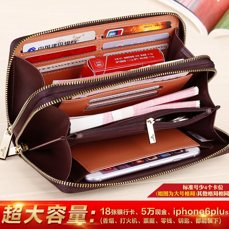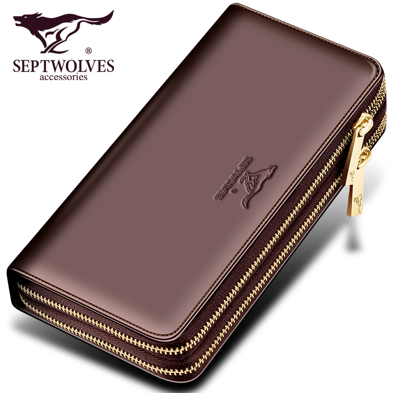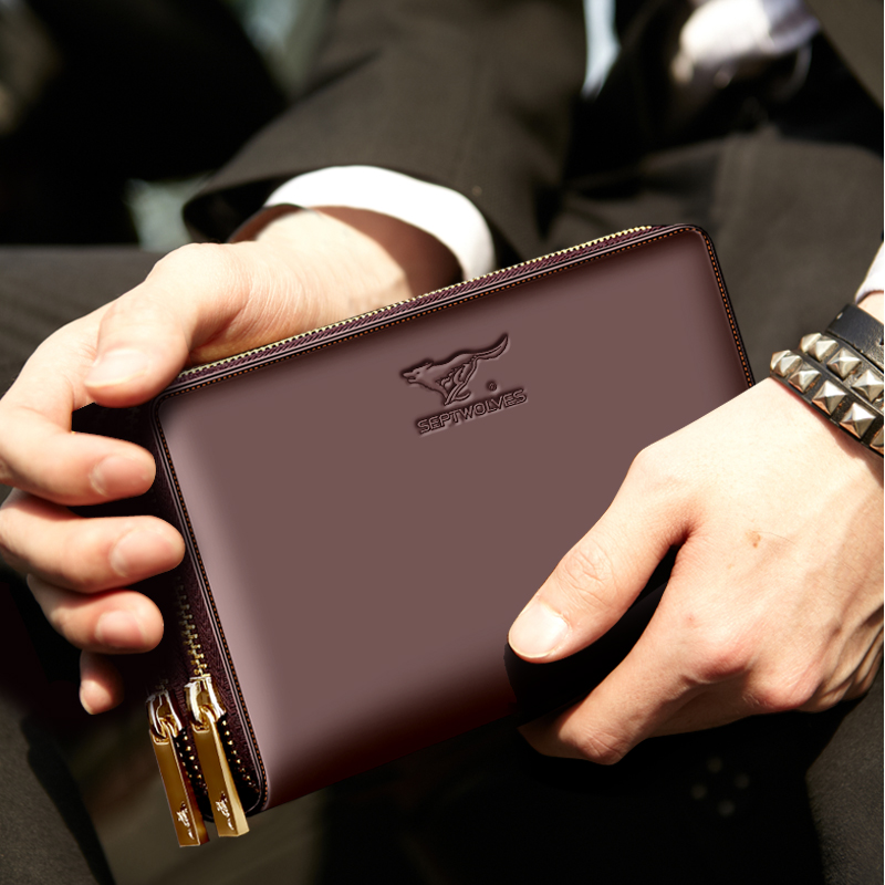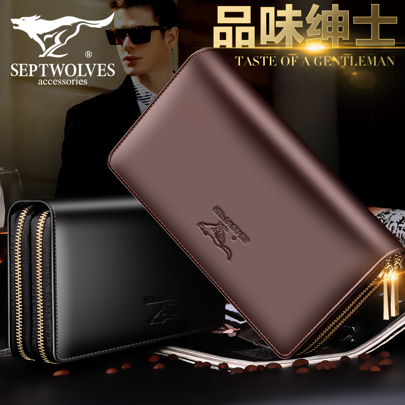 Seven wolves handbags male leather male bag double zip large-capacity wallet large-scale handbag men casual tide bag