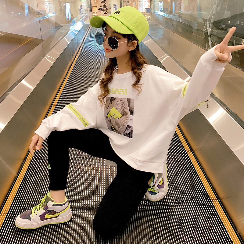 Girl's thick T-shirt Korean version of the wave CUHK Children's children Yanites loose casual thick cotton pro-dress pure cotton inner lap jacket