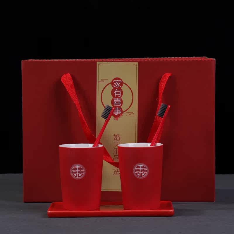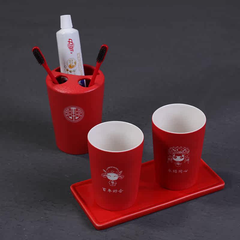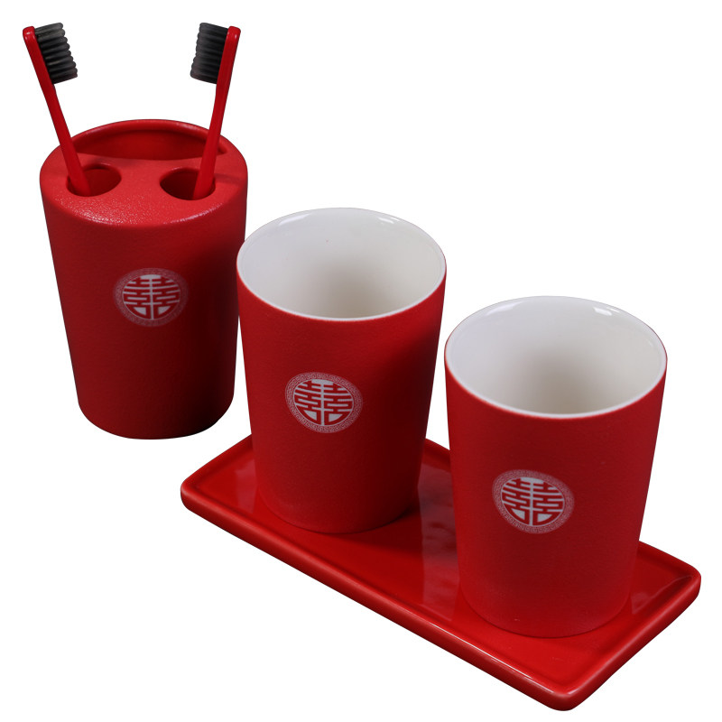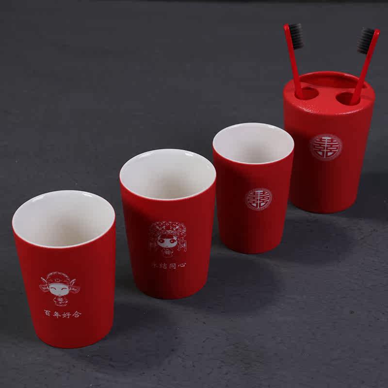 Toiletries Cup Suit Combined Couple Gargle Cup Red Wedding a pair of toothbrush cups Ceramic Creative Tooth Vat Wedding Celebration
