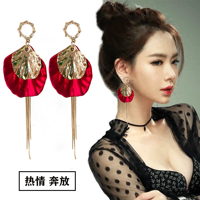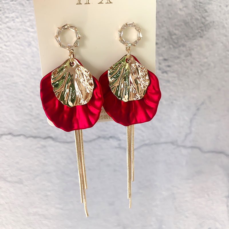 Petal earrings female Korean winter style red New Year's festive earrings with high-quality net red 2019 new trend