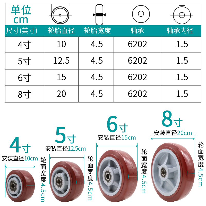 4 Inch Polyurethane Single Wheels 5 Inch Polyurethane Single Wheel 6 Inch Polyurethane Single Wheel 8 Inch Polyurethane Single Wheel