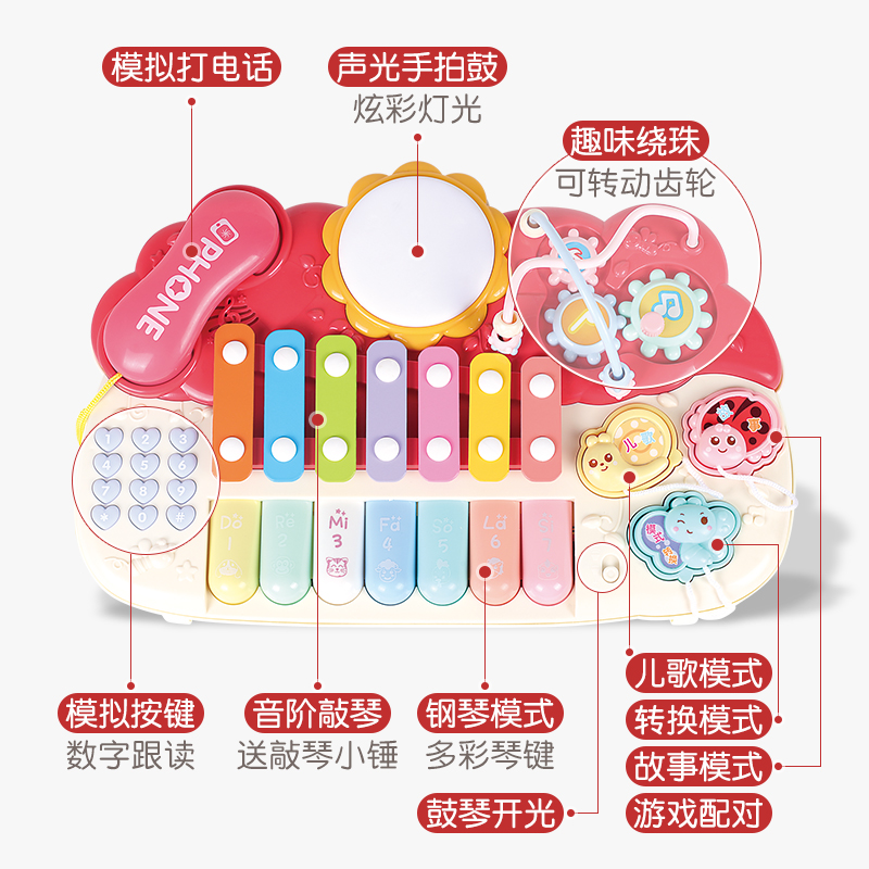 Phone drum piano (knock, play and tell stories) pink battery version Phone drum piano (knock and play and tell stories) pink rechargeable version Phone drum piano (knock, play and tell stories) blue electric