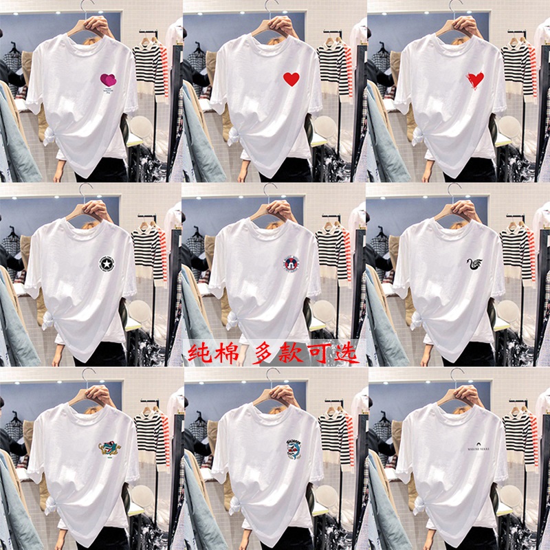 South Korea Aging Short Sleeve Woman Cartoon Loose version Short sleeves Round Collar Thin pure cotton half sleeve T-shirt female inner hitch undershirt