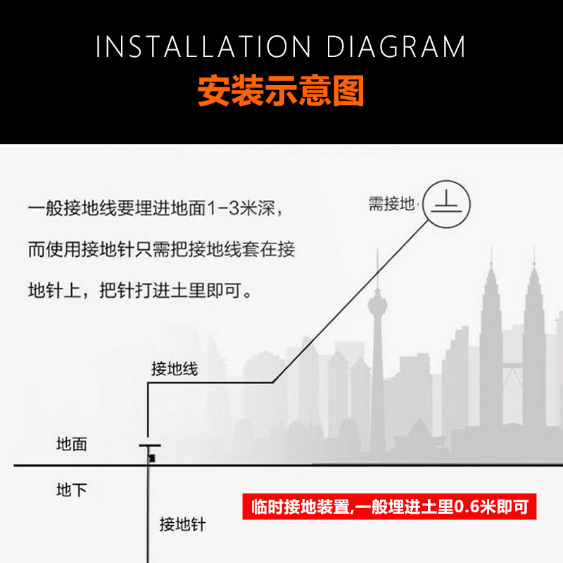 Grounding wire grounding Earth Rod Lightning Rod Home Ground Stitch Earth Wire Indoor engineering galvanized ground Needle Earth