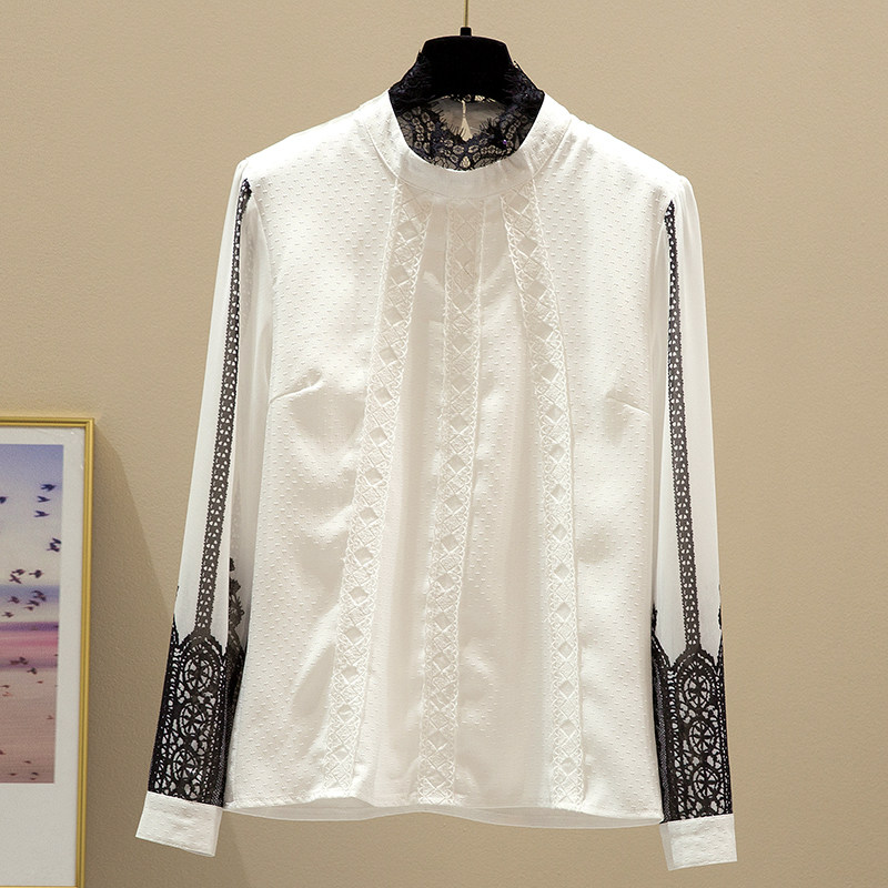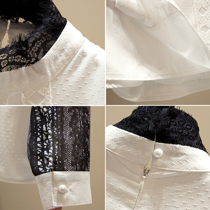 South Korea Spring Autumn New Collar Lace Snowspun Bottoms Shirts Women Advanced Fashion Pro Sol Foreign Pie shirts
