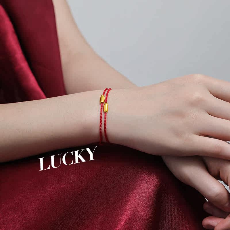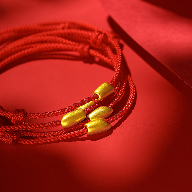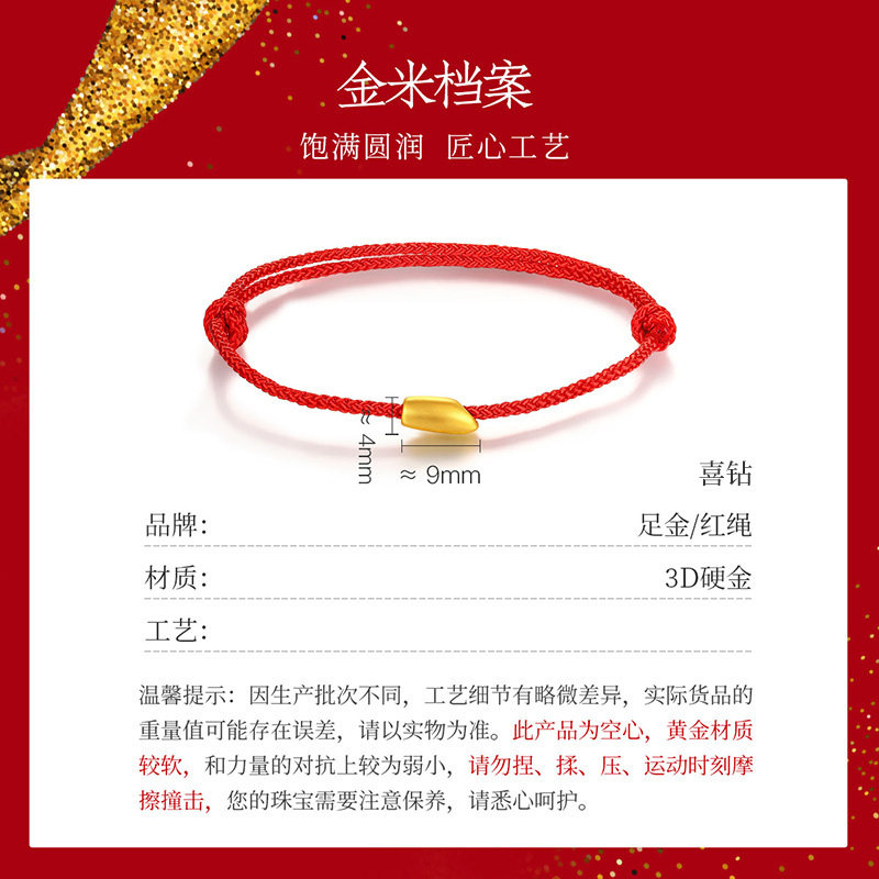 Joy Diamond Gold Handmade 3D Hard Gold Foot Gold 999 Rat Year With Rice Transfer Red Rope Rat Year MEN AND WOMEN GIFTS