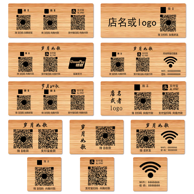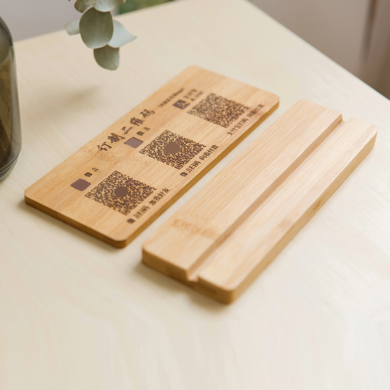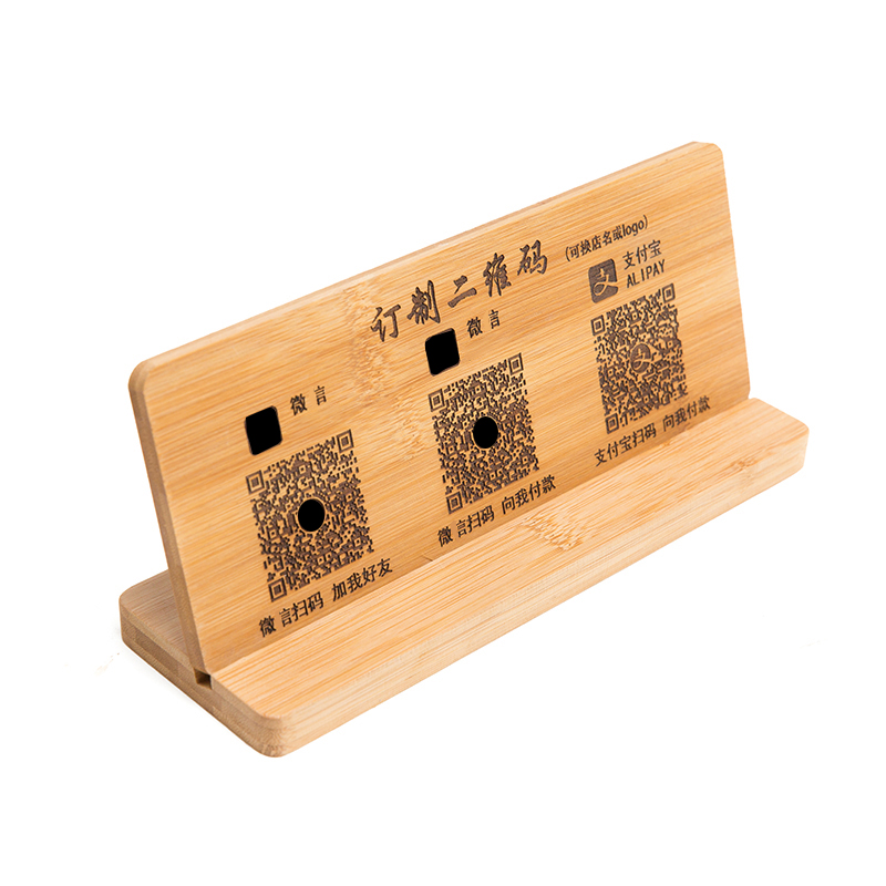 Customized two-dimensional code scanning card WeChat Alipay money collection payment logo cashier hanging stand card solid wood carving table