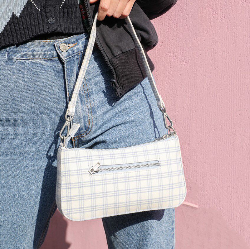 brandi bag retro blue plaid with small red book the same paragraph 100 lap armpits underpack art fresh shoulder bag