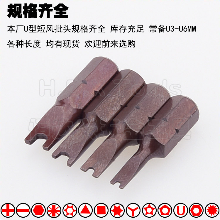 S2 steel U type short wind batch head 25MM short batch nozzle plus hard strong magnetic special fork type screwdriver head screwdriver head screwdriver head-Taobao