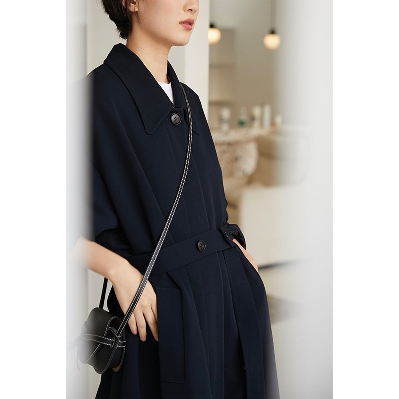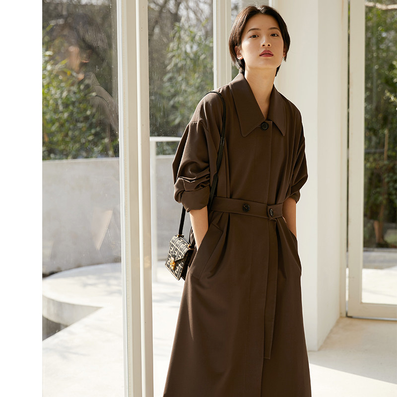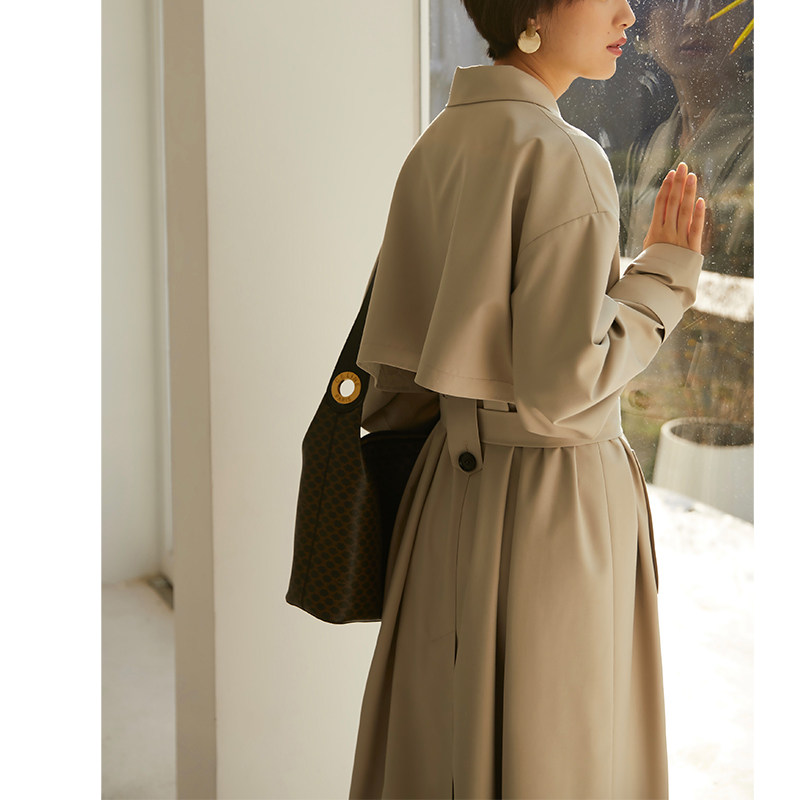 Rui Shi Chunqiu Art Museum style retro French chic windbreaker women's mid-length vertical straight waist off-the-shoulder jacket