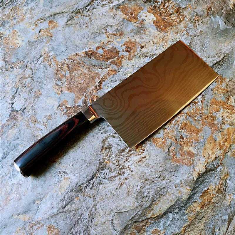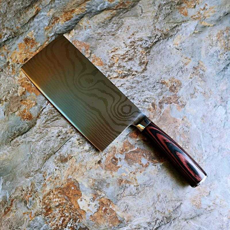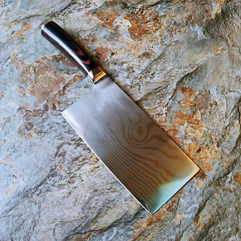German stainless steel Damascus pattern kitchen knife household kitchen cutter meat cutting knife sharp cutting dual-purpose knife