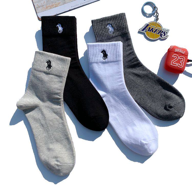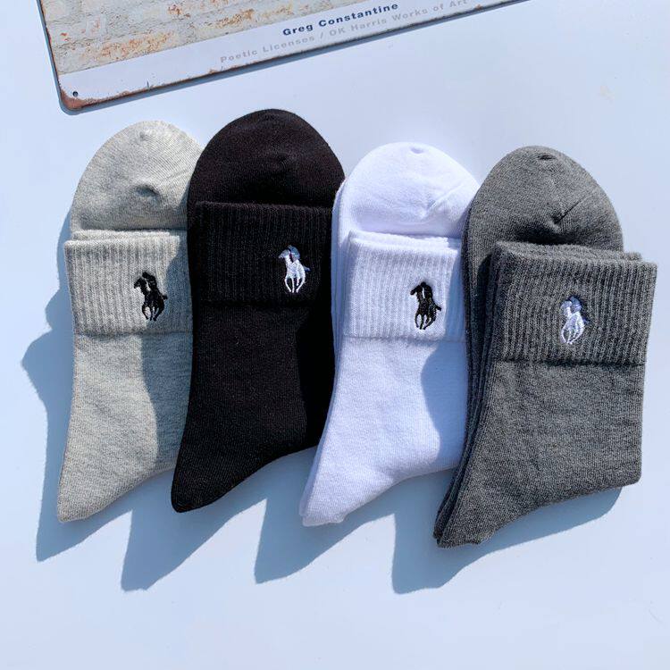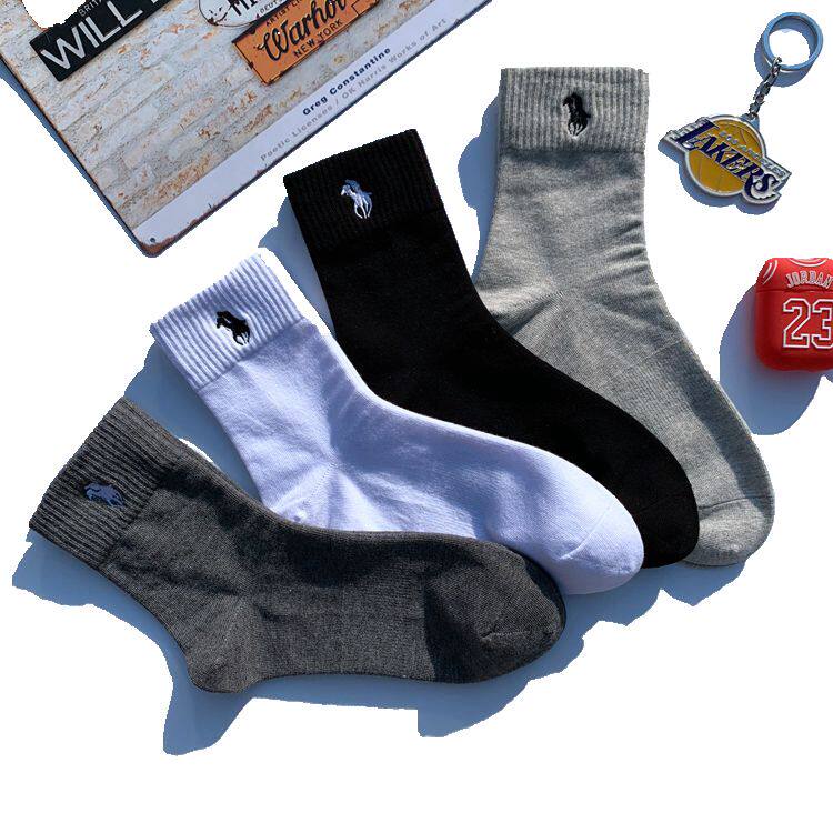 3 pairs of socks men's middle cylinder sports socks pure color simple black and white embroidered cotton socks with knowledge of the dragon socks-Taobao