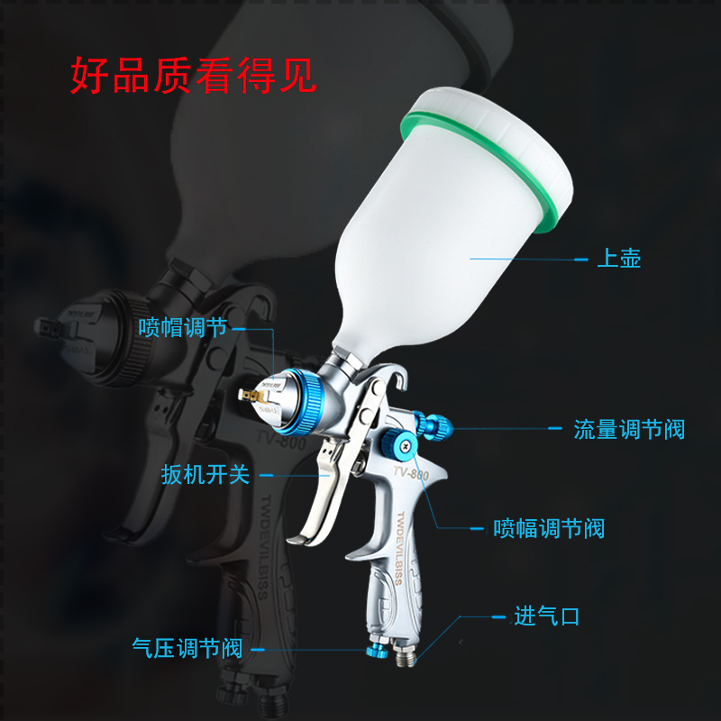 Automotive sheet metal lacquered surface repair pneumatic tool high pressure high atomization high-precision paint spray gun full aluminum body