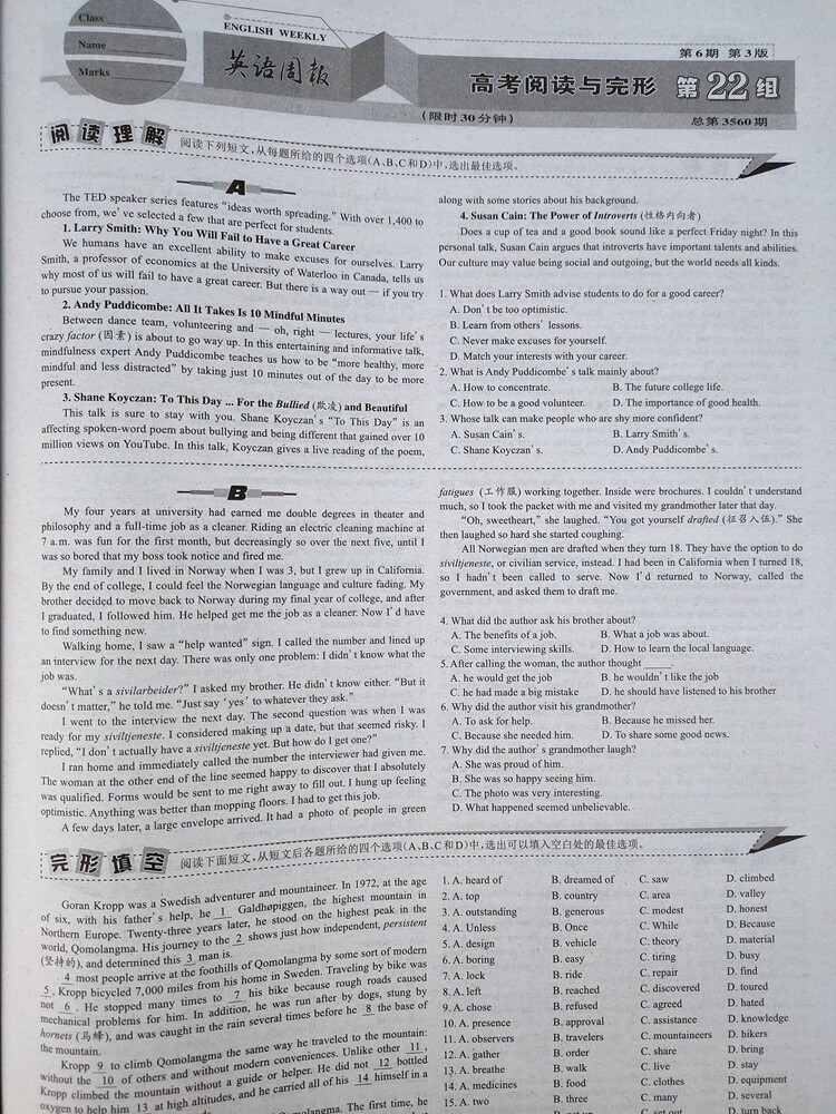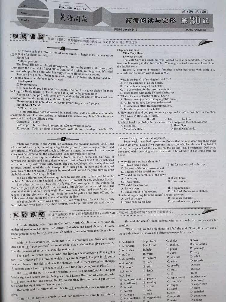 English weekly newspaper gaokao next semester reading and completion of special refresher training in the newspaper 2020 new edition