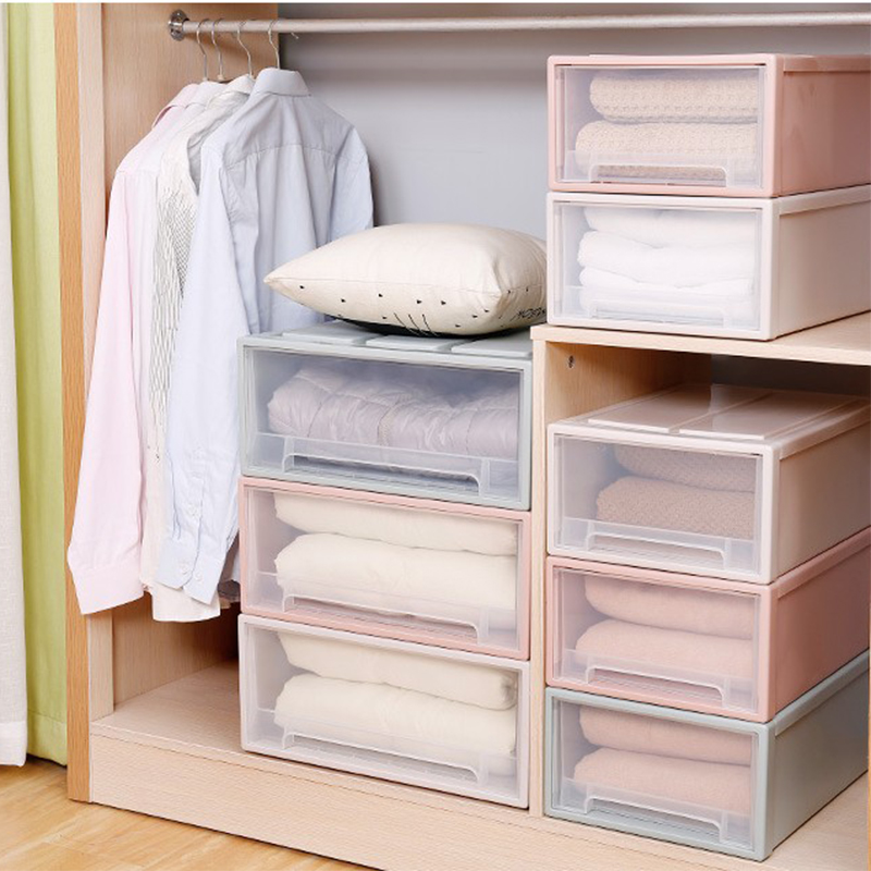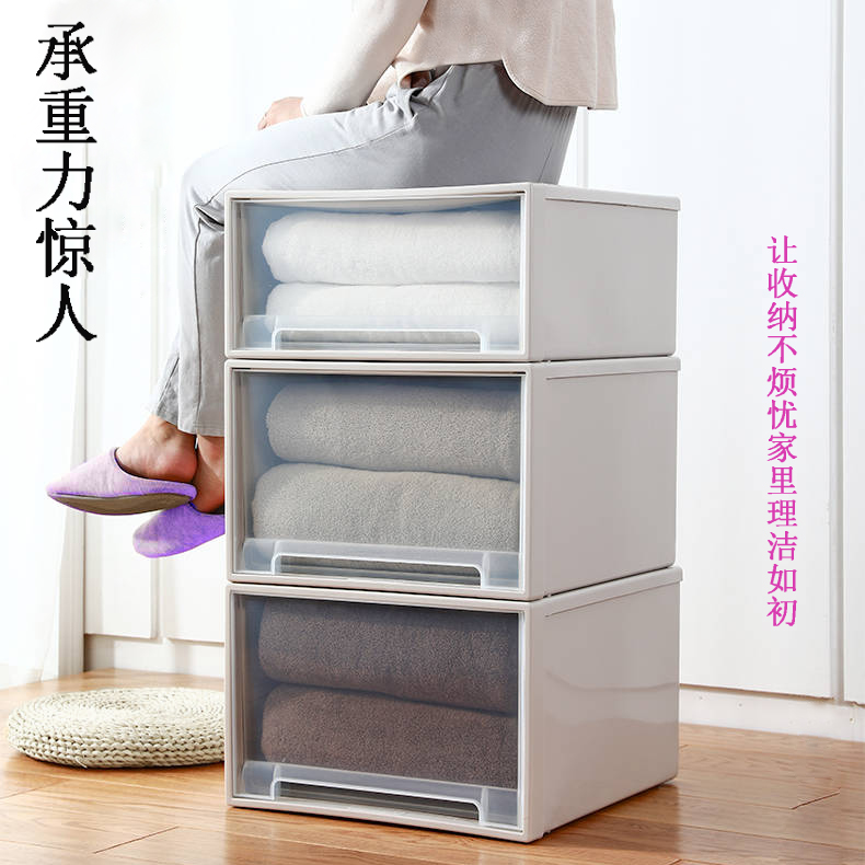 Clothes storage locker drawer type layering can be superposition plastic transparent household table top under the bed finishing box
