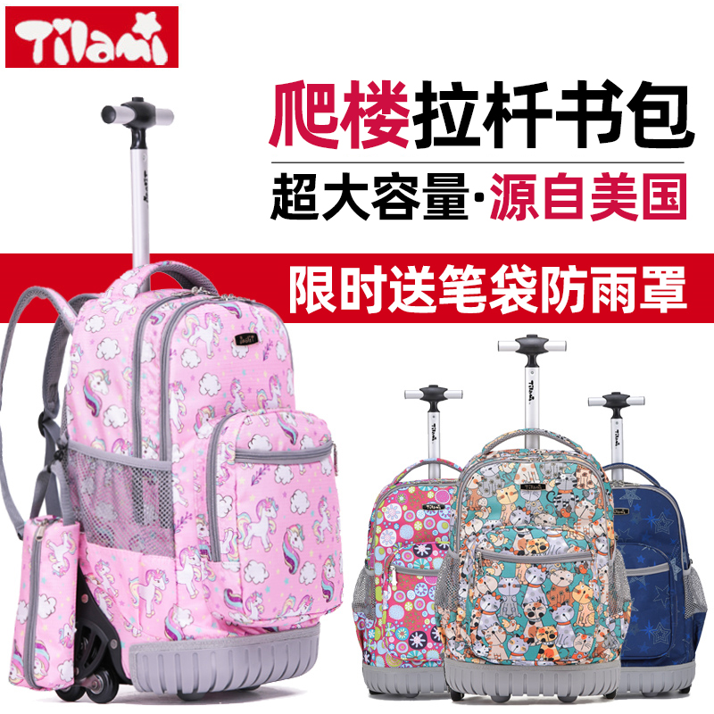 Tilami junior high school and primary school students pull rod schoolbag three-wheel can climb the building large-capacity high school boys and girls children's backpack