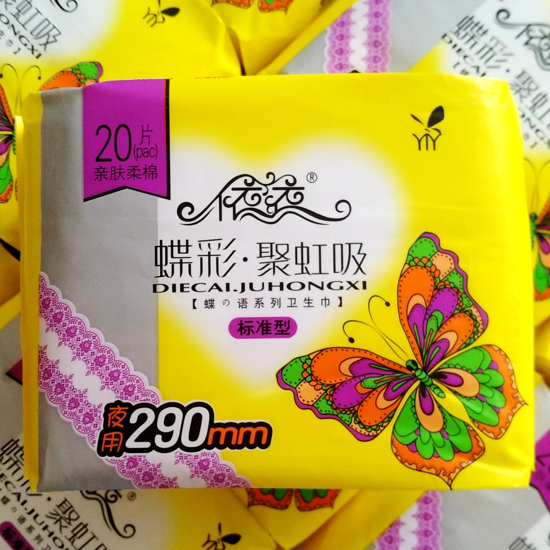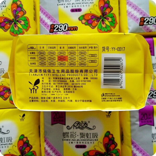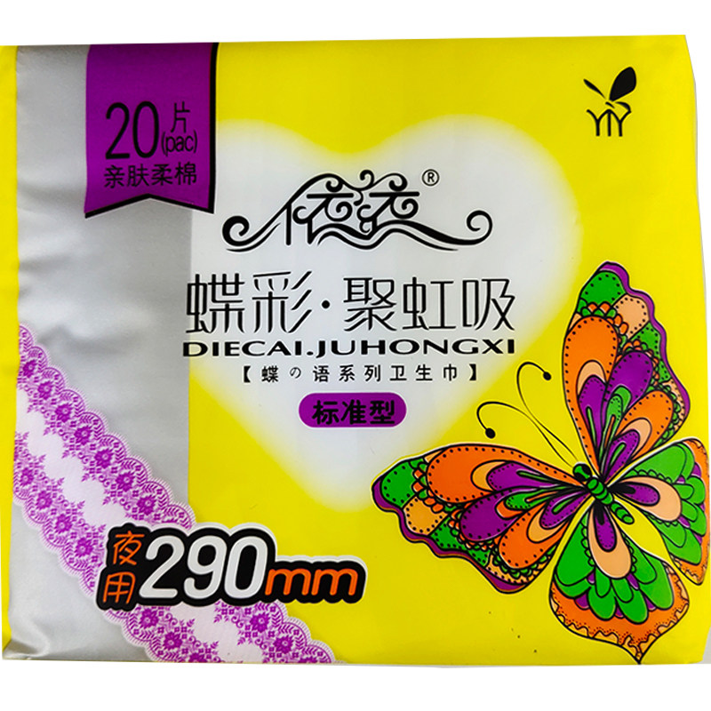 A set of 5 packs of Yiyi sanitary napkins night use lengthened 290MM cotton soft skin-friendly 20 pieces