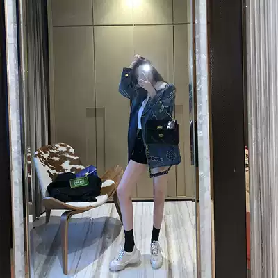 LIN CHAO ZHANG Early spring album heavy industry star with the same wang fried private clothes cloth-pasted denim jacket