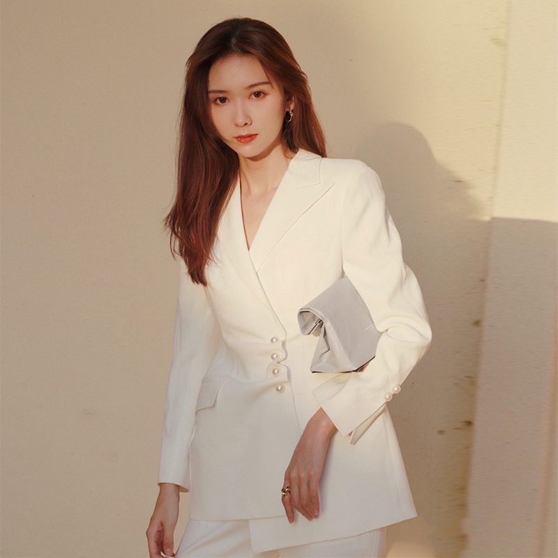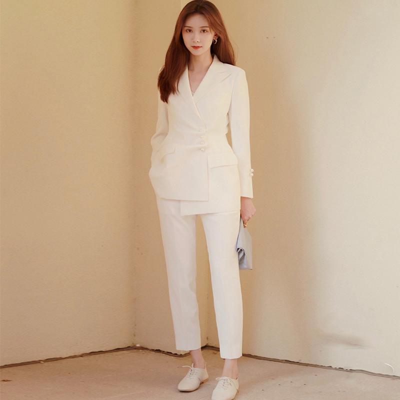 2020 Spring New White Suit Costume OL suit suit professional small pants lady to repair two pieces