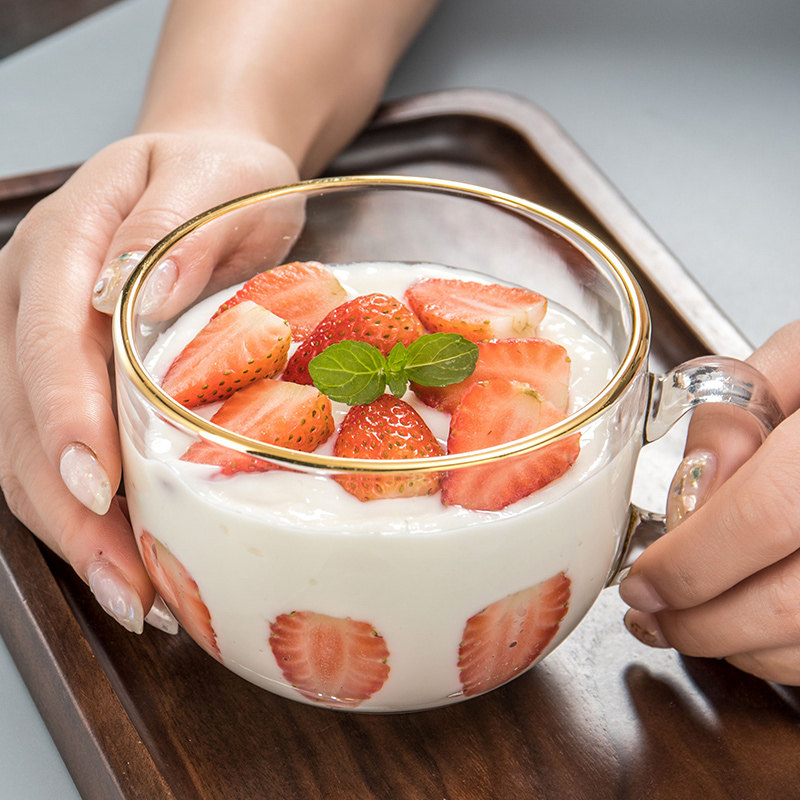 2-piece set of Nordic Brown glass Oat breakfast cup Household heat-resistant large capacity milk cup with lid spoon mug