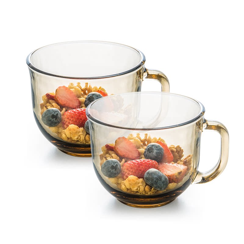 2 transparent breakfast cups 2 brown breakfast cups 2 tempered breakfast cups 2 Phnom Penh Breakfast cups 1 tempered large food pot 2 transparent breakfast cups Wooden handle spoon 1 transparent breakfast cup 1 brown breakfast cup
