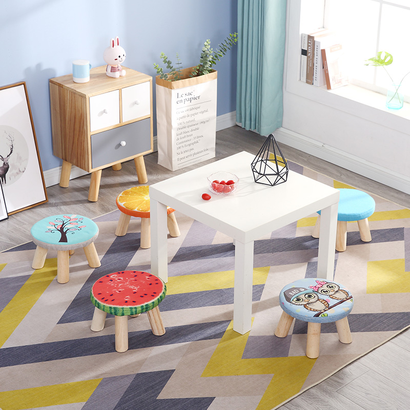 Solid wood small stool cartoon changing shoes stool round stool living-room net red sofa stool short stool Creative Tea Table bench Home