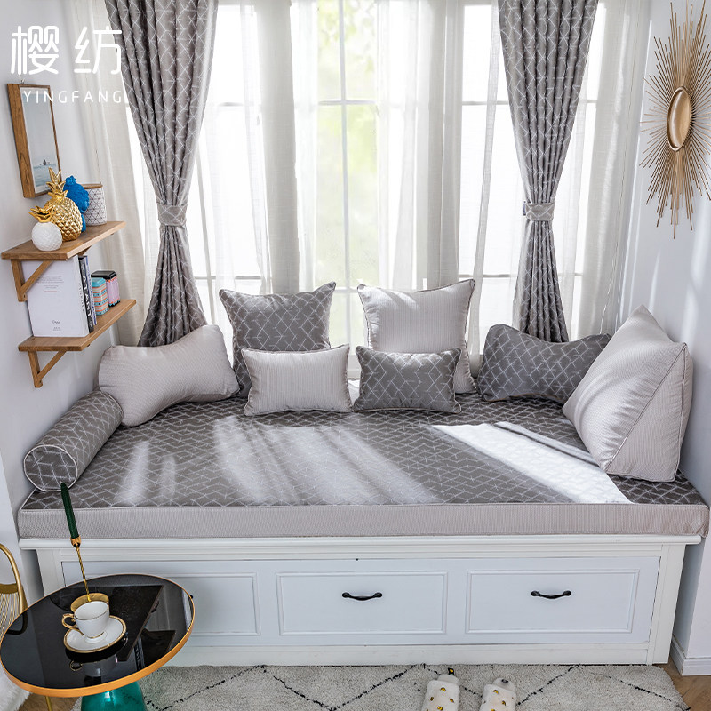 Light luxury houndstooth gray bay window mat window sill mat simple modern bedroom tatami mat removable and washable balcony mat