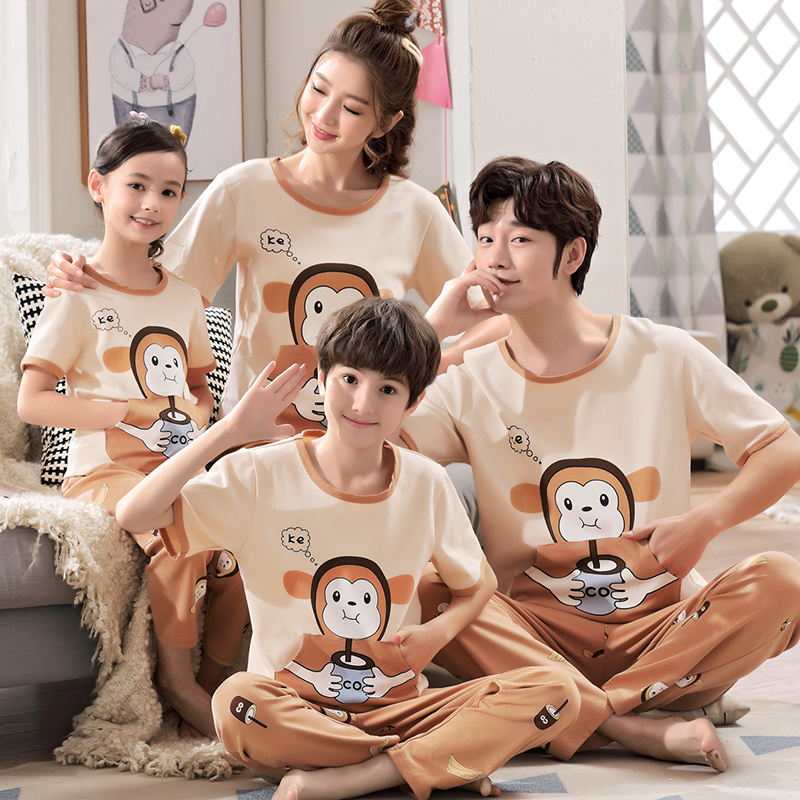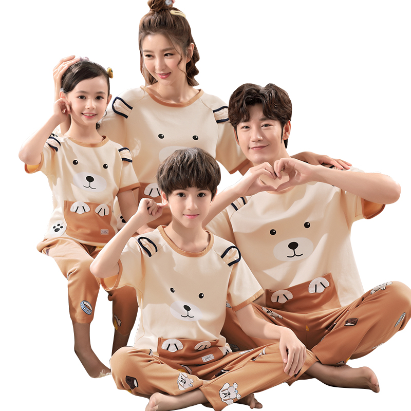 Parent-child pajamas summer cotton short-sleeved trousers a family of three thin pajamas boys and girls cotton air-conditioning home clothes