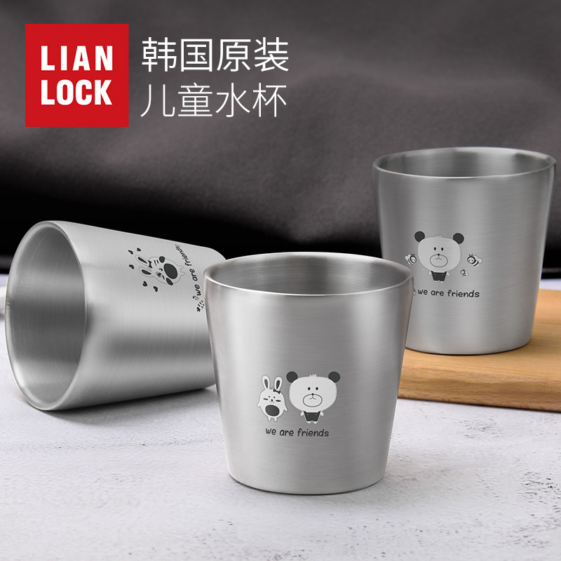 South Korea Imported Children's Water Glass 304 Stainless Steel Accompanying Cup Double Cups Heat Insulation Toddler Water Glass Drinking BEAR RABBIT