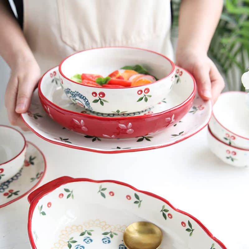 Lovely hand - drawn cherry ceramic dish kit Household dishes dishes dishes soup dishes dish dish dish dish dish dish dish dish kit