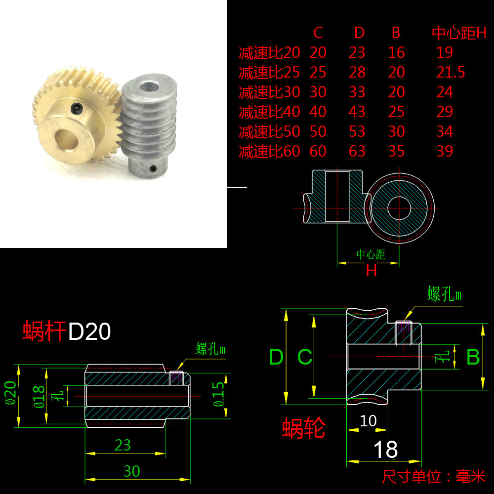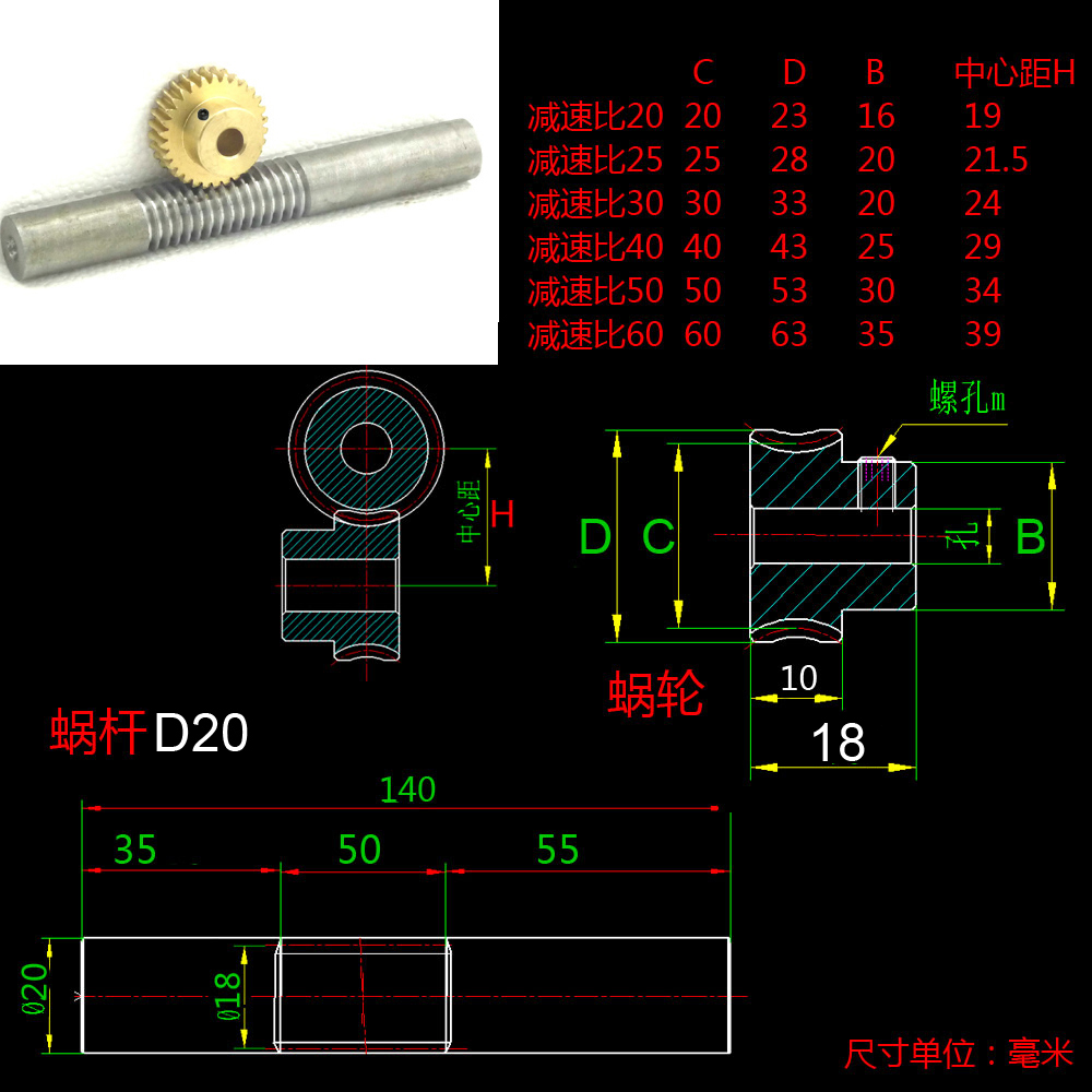 1-die copper worm gear D18 D20 reduction ratio 30 40 50 60 tooth turbine elevator gear accessories