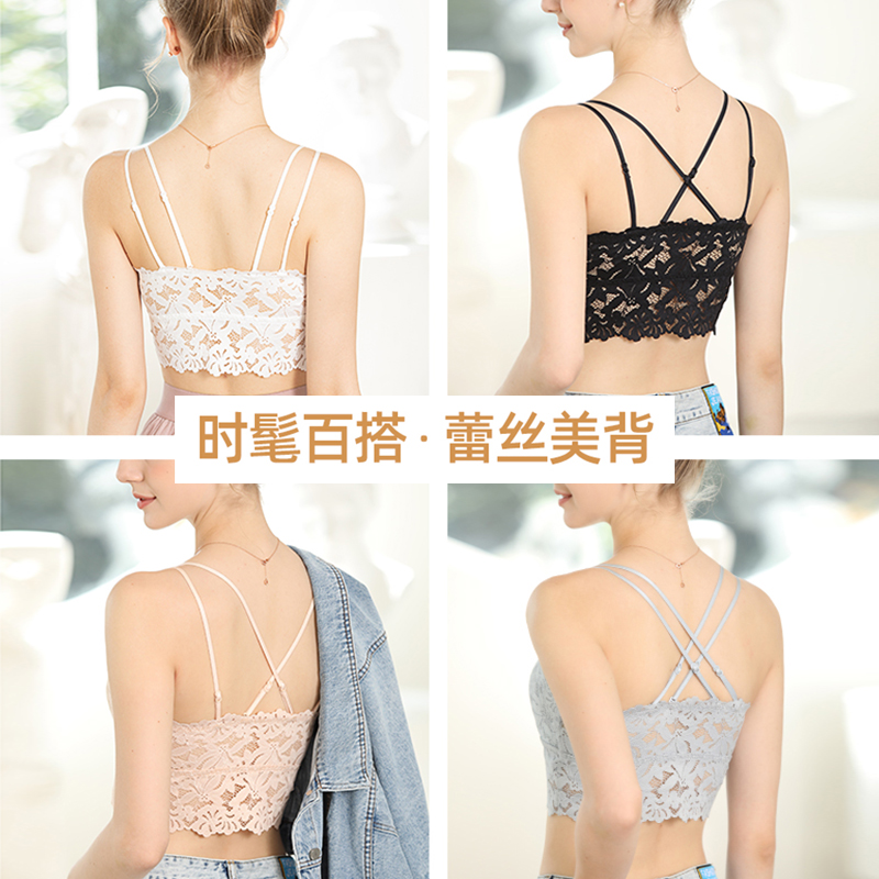 Mutual language beauty back suspender net red explosion sexy lace bra base anti-light bandeau women's vest gathered around the chest