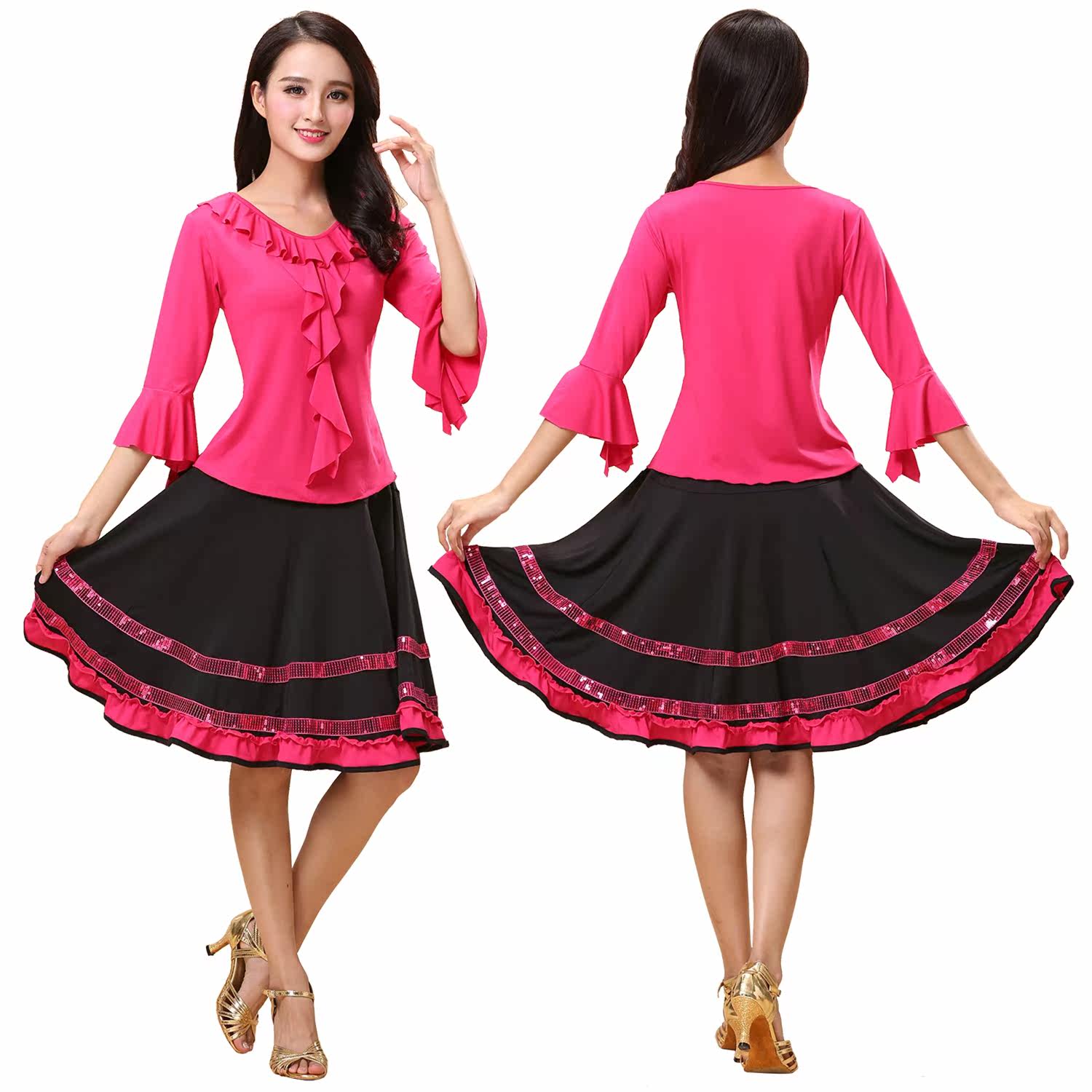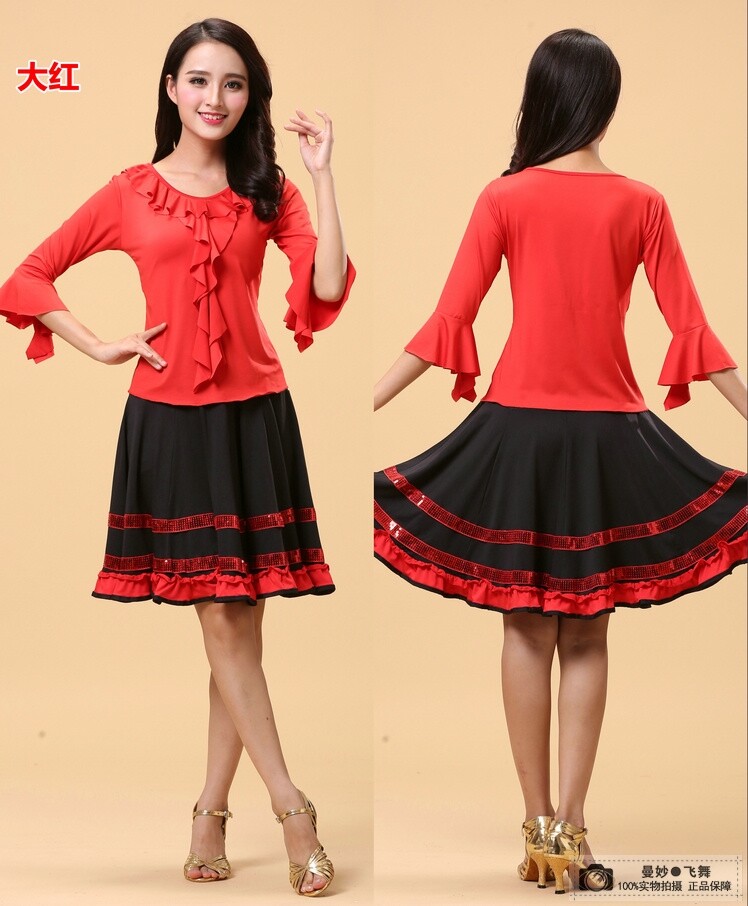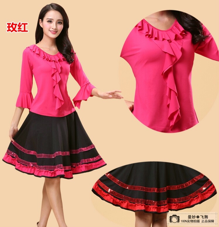 Square Dance Clothing New Set Low Leaves Long Sleeve Swing Dress for Old Practice Dance Horn Sleeper