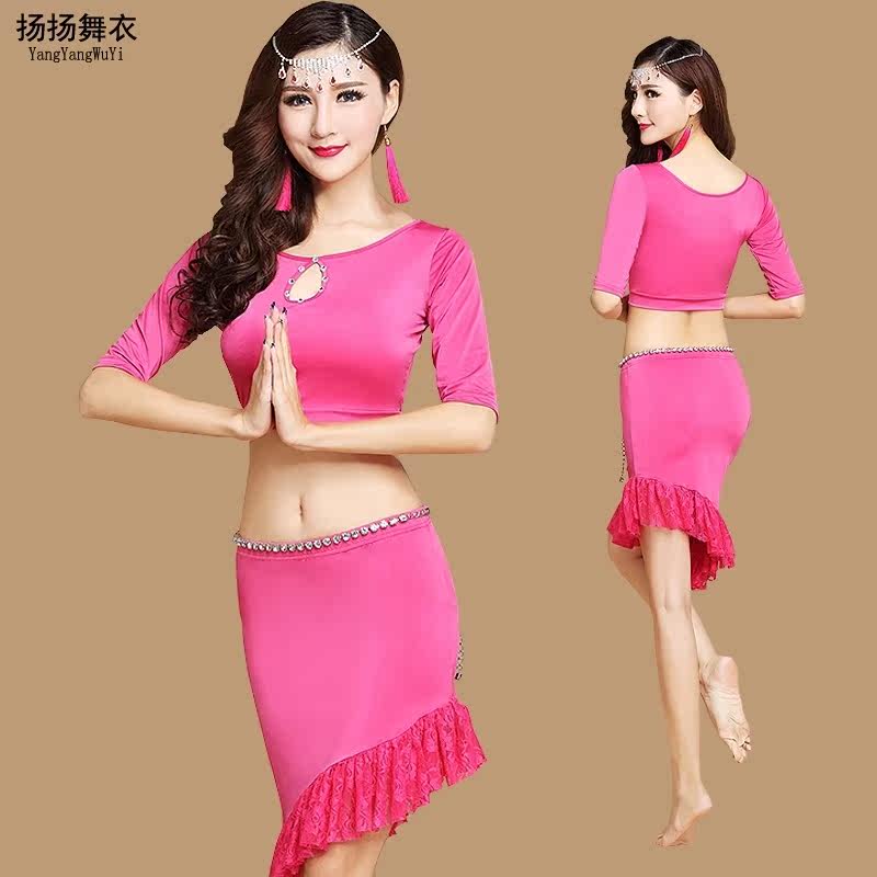 2016 new belly leather dance dress rehearsal for half body dress rehearsal for practice suit for spring and summer Yangyan dance