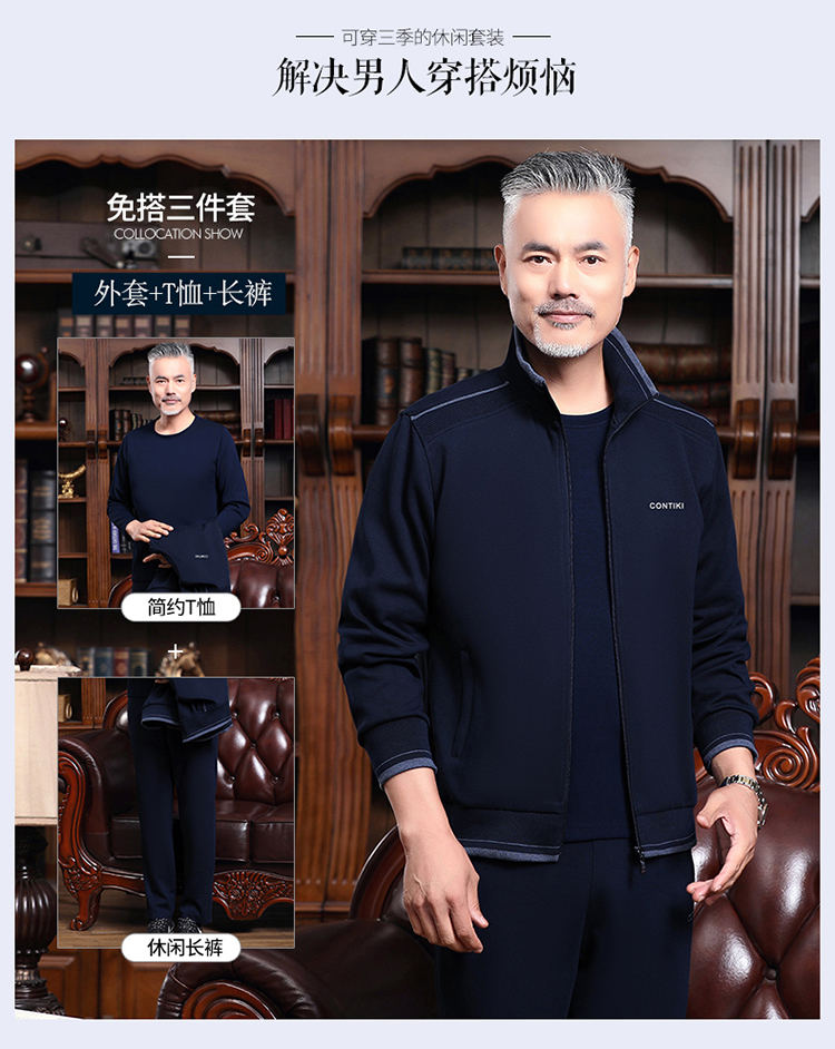 Middle-aged sports suit men three pieces of large-scale spring new middle-aged casual sportswear running suit daddy