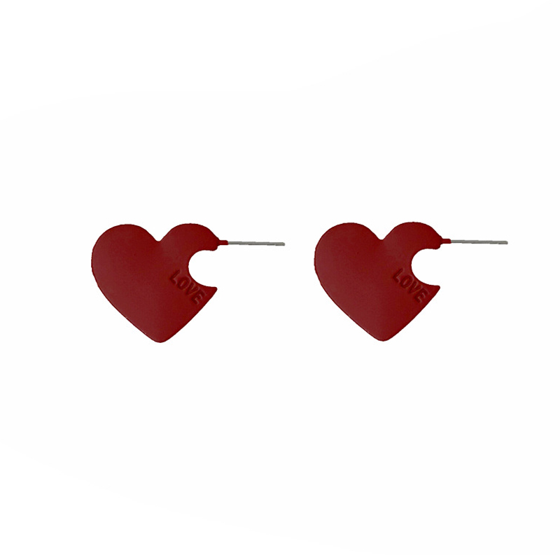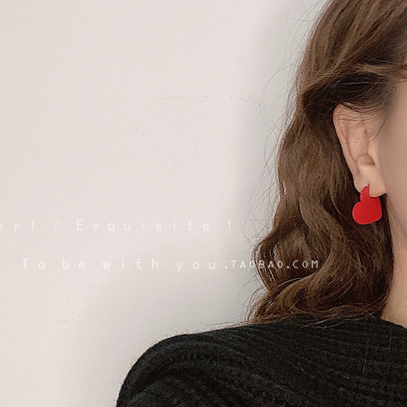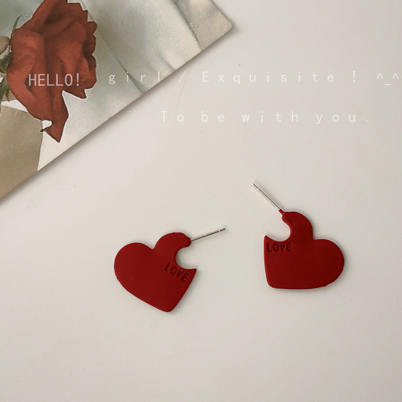 IU with the same sweet red paint love earrings female personality net red LOVE earrings simple temperament small earrings