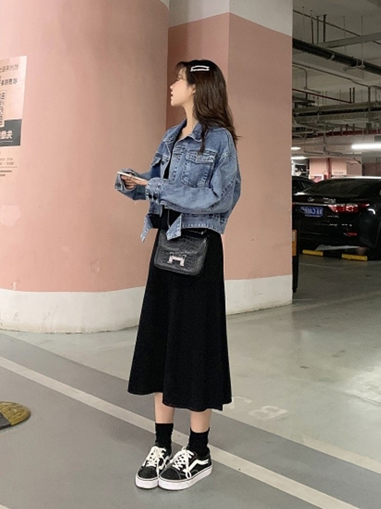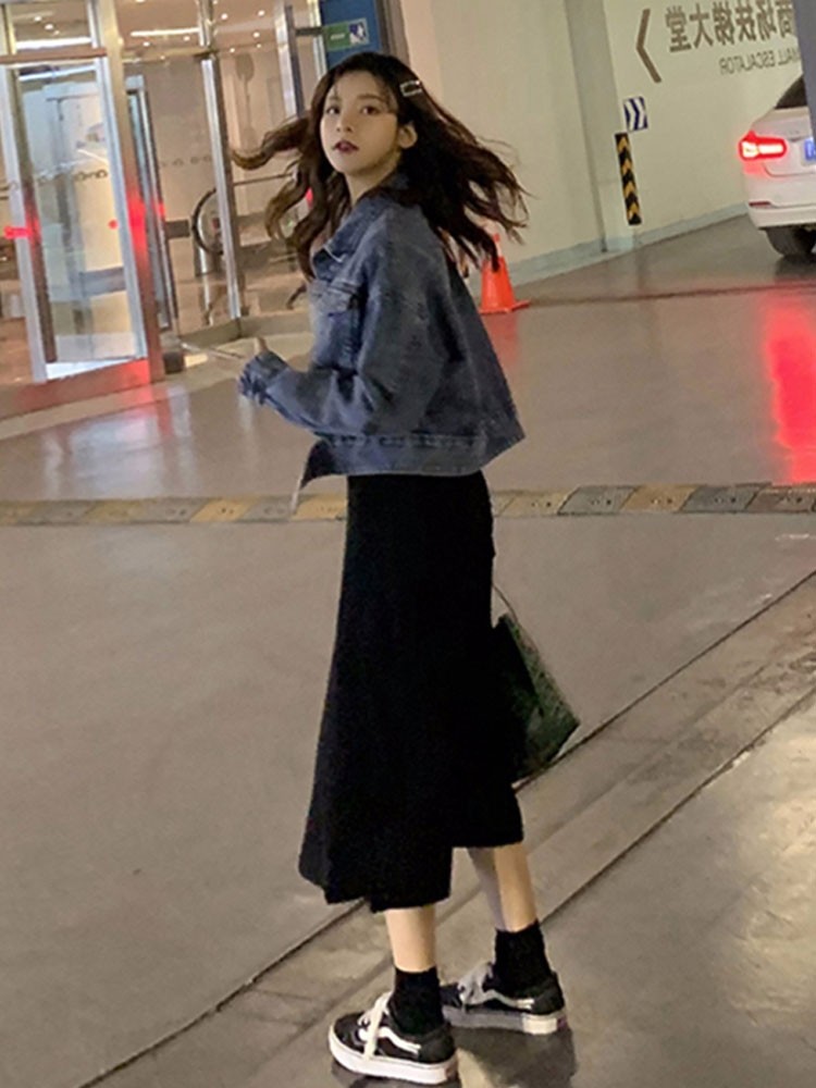 Spring - dress girls 2023 new suit commuted with a fat sister large - coded skirt cowboy coat two sets