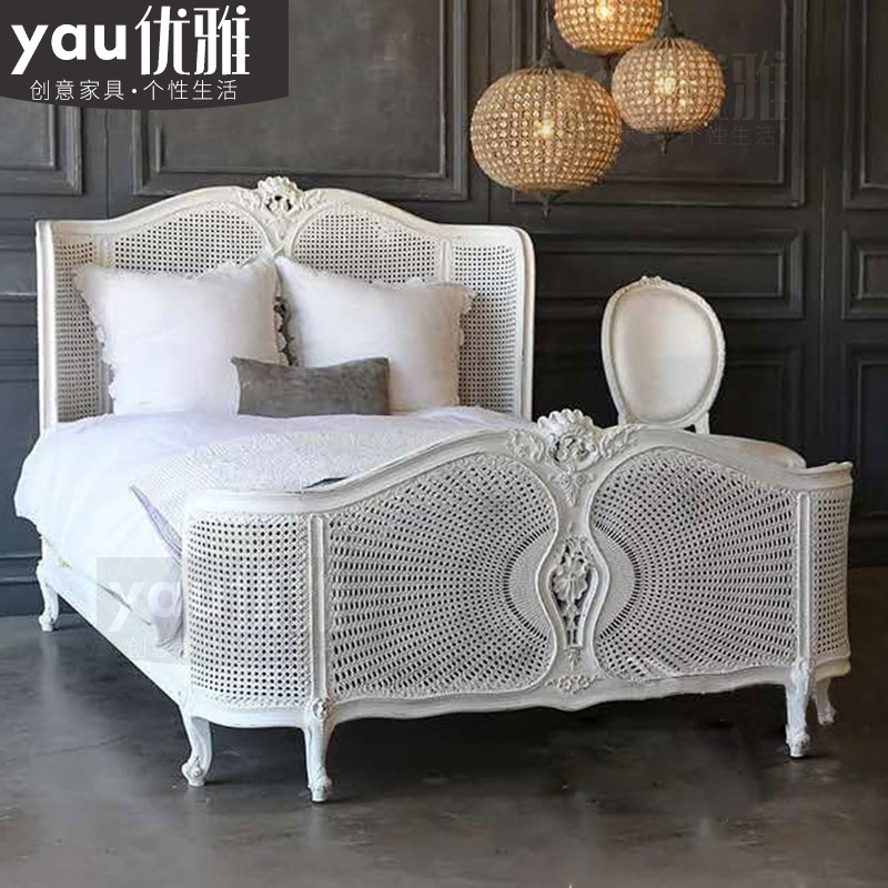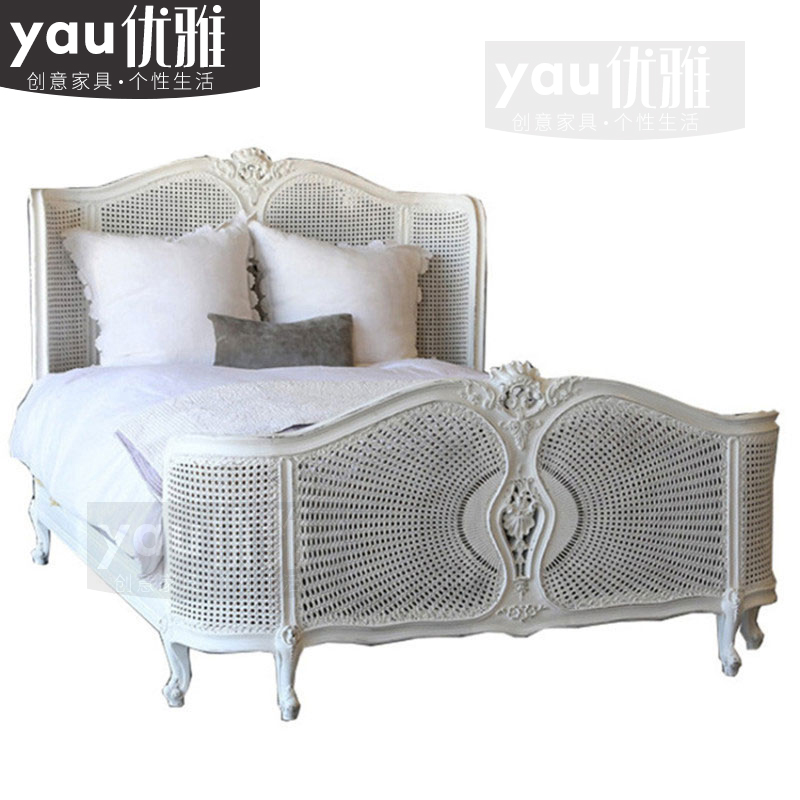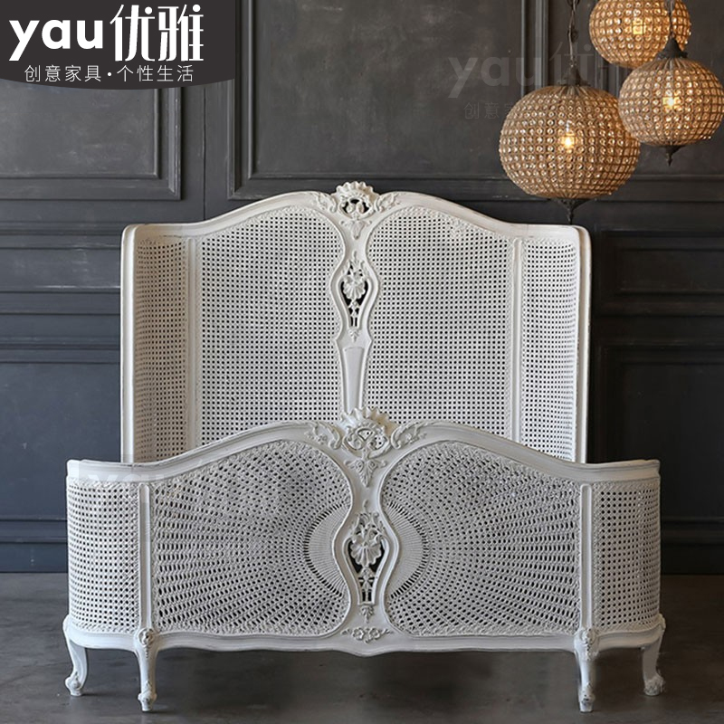 French bedroom rattan double wedding bed American solid wood carving 1 51 8 meters princess bed antique and old homestay