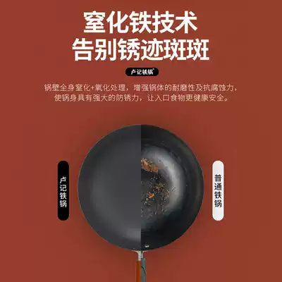 Lu Ji handmade cooked iron pot old wok home ultra light non-coated Chinese round wok gas stove Special