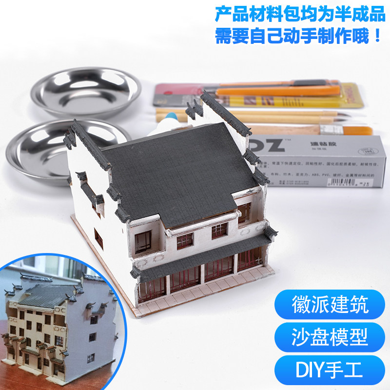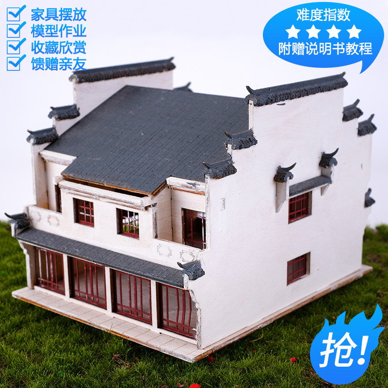 Wooden assembly building sand table model material DIY manual simulation scene cottage Chinese Huipai building model