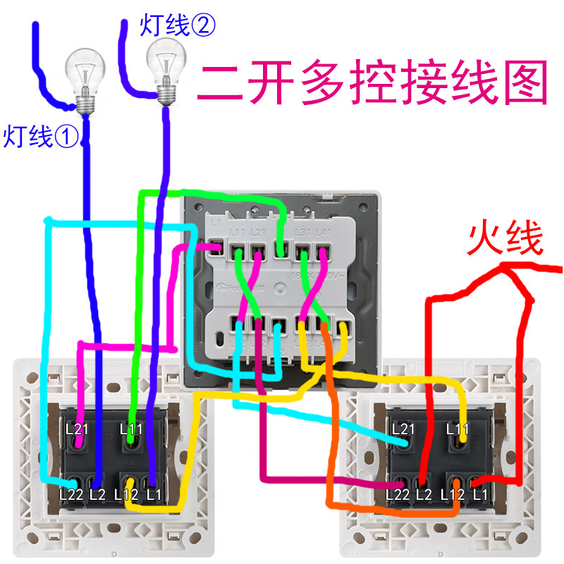 Flying eagle large board gray two open multi-control halfway switch 2-bit multi-control two-open multi-control three-control double-open 2-open panel double-couplet