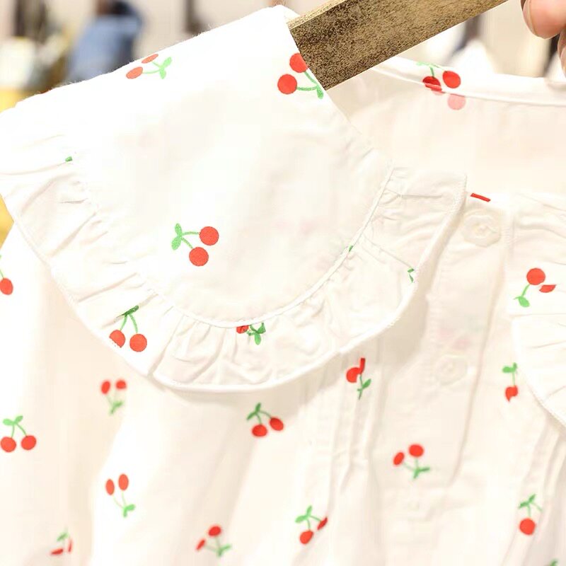Girl white shirt pure cotton 2022 spring new female baby Jane about flipped shirt child 100 hitch a foreign blouse