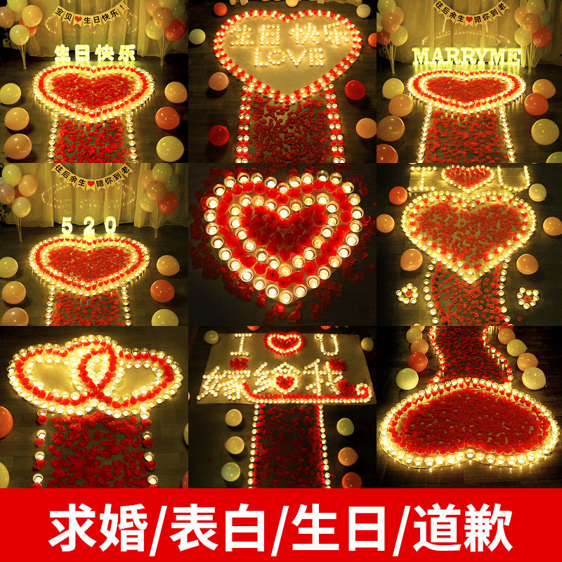 Candle Romantic Surprise Birthday Courted Wedding Creative Arrangement Supplies Table White Prop Scene Decoration Courted Love Sue White Eroticism